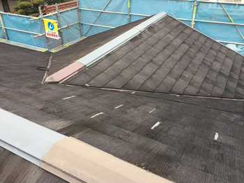下葺き材を新しいゴムアスルーフィングに貼り変えます。