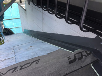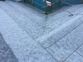 平部に施工している様子です。ゴムアスルーフィングは20年以上の耐久性があります。