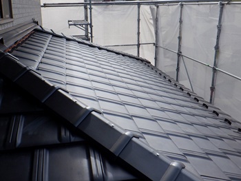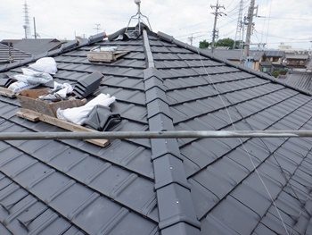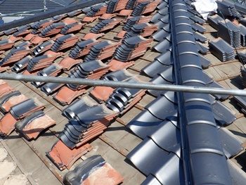 こちらが施工中のお写真です。まずは既存の瓦を撤去していきます。