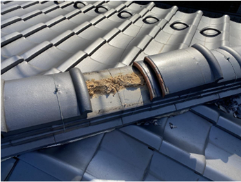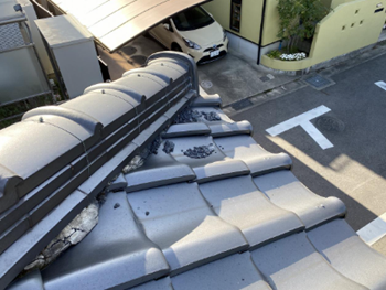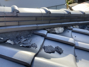 隅棟はベンリモルタルの剥がれが見受けられます。